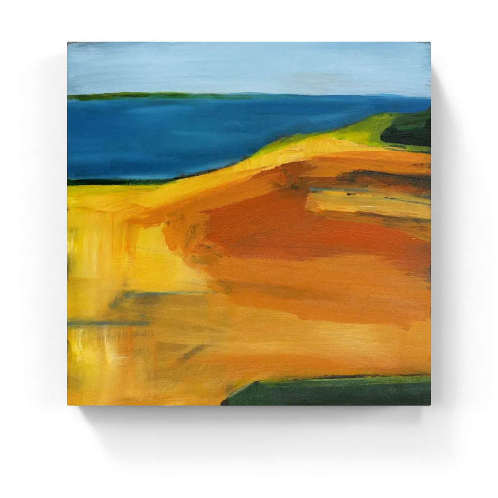 Bold and abstracted—this landscape-inspired painting distorts land and water into puzzle-like shapes and earthy tones, blending whimsy with organic rhythm.