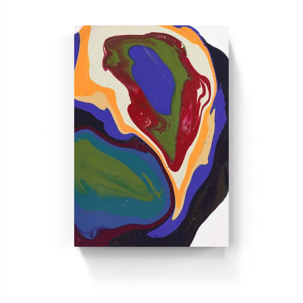 Color melts into color in this fluid abstraction—lush greens, deep blues, and fleshy peach tones swirl like lava caught mid-thought. Smooth, organic shapes twist and pull at the edge of form, dripping with mystery and motion.