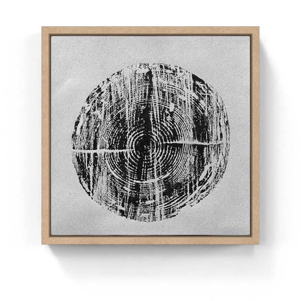 This bold tree ring print makes time visible through deep grooves and organic symmetry. Rendered in stark black on grey, the composition feels minimalist and raw, yet powerfully rooted in nature’s rhythm. Both graphic and meditative, it adds timeless texture and natural depth to contemporary interiors.