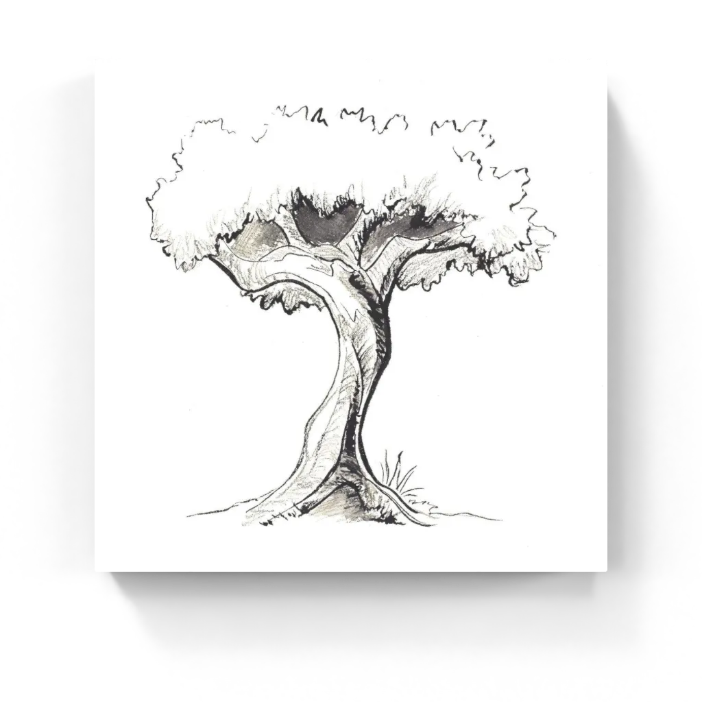 A twisting trunk rises with graceful defiance, its canopy a loose burst of inked leaves. Hardwood I is a black-and-white study in resilience—elegant, organic, and quietly animated with life.