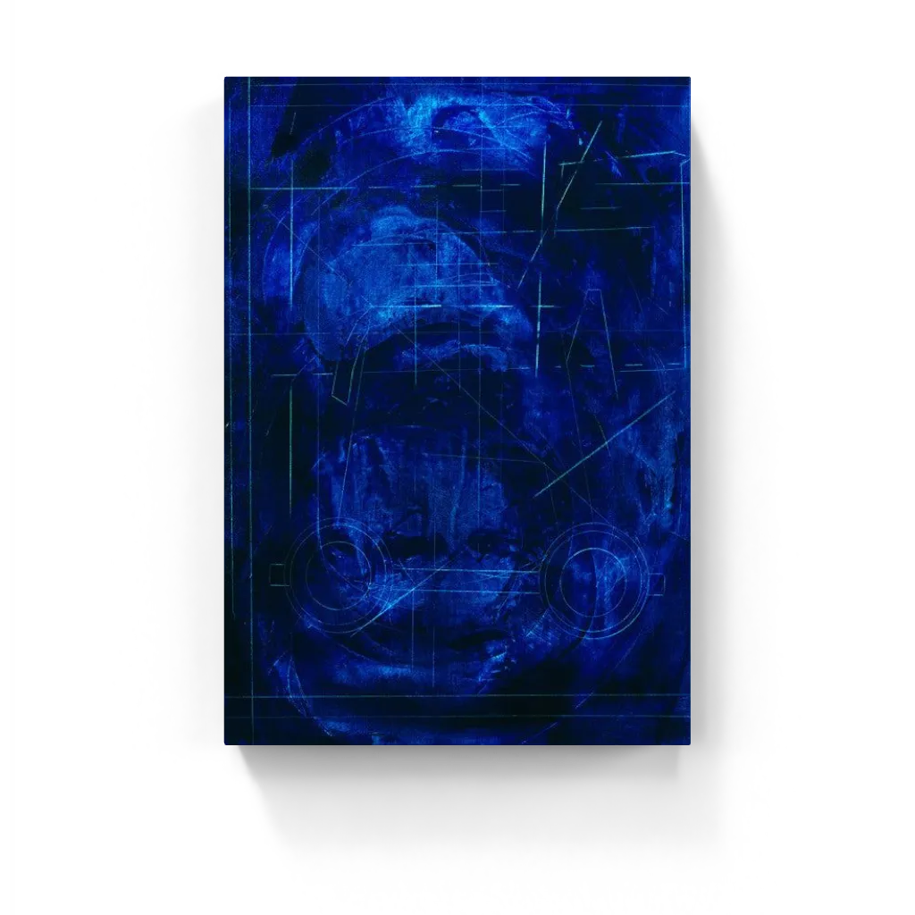 This abstract artwork bursts with deep, electric shades of blue, layered with geometric lines and circular patterns. The composition balances the chaos with a sense of harmony, creating a visual blueprint of modern disruption. Ideal for contemporary interiors looking for bold artistic energy.