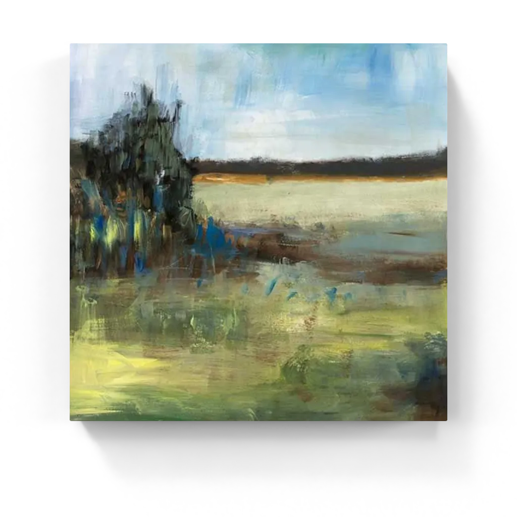 This atmospheric abstract landscape evokes the softened radiance of nature after a rainfall. Layers of olive green, deep cobalt, and golden light melt into a horizon that feels both reflective and alive. Moody yet fresh, the composition captures the essence of renewal and natural stillness. Ideal for collectors seeking emotional depth, rich palettes, and expressive, nature-inspired abstraction.