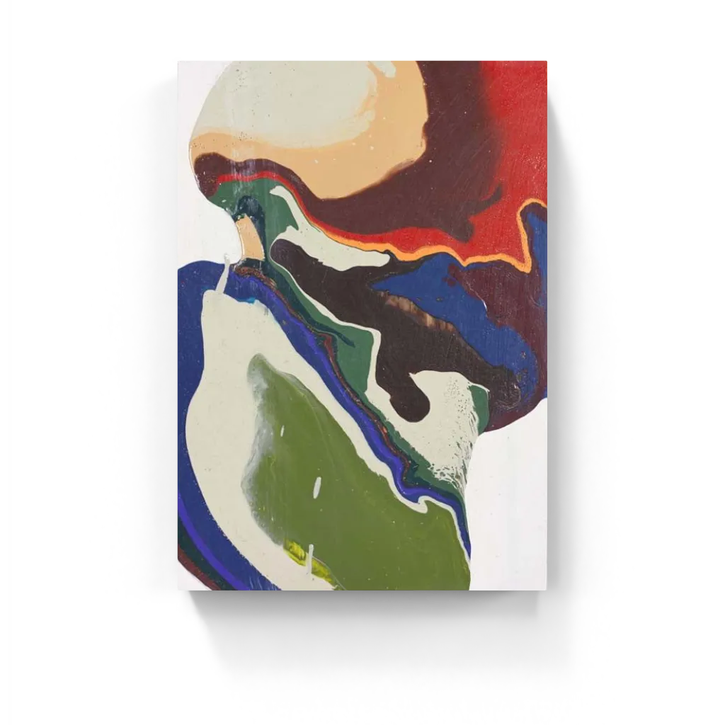 Color melts into color in this fluid abstraction—lush greens, deep blues, and fleshy peach tones swirl like lava caught mid-thought. Smooth, organic shapes twist and pull at the edge of form, dripping with mystery and motion.