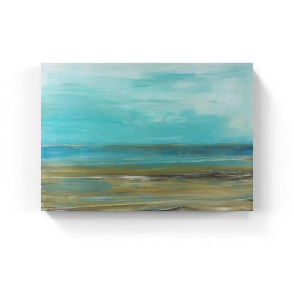 Soft blues and earthy tones make Serene Short II a meditation in color and stillness. The horizon-like composition is ideal for beach homes, spas, or minimalist interiors seeking calm.