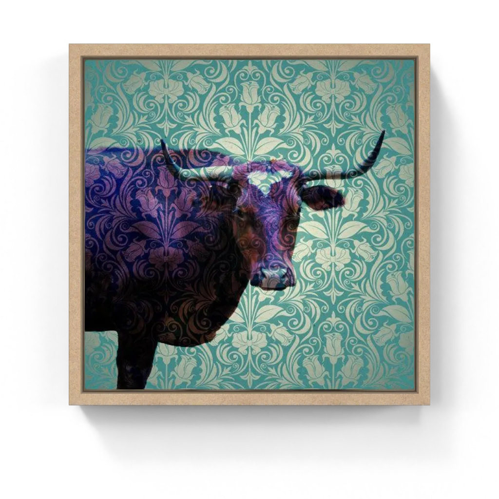 This surreal bull artwork merges raw strength with ornate detail, as the animal’s silhouette emerges from a baroque floral pattern. Half hidden yet commanding, the bull embodies both elegance and instinct in a visual clash. This piece is perfect for all contemporary interiors seeking dramatic impact with a refined, artistic edge.