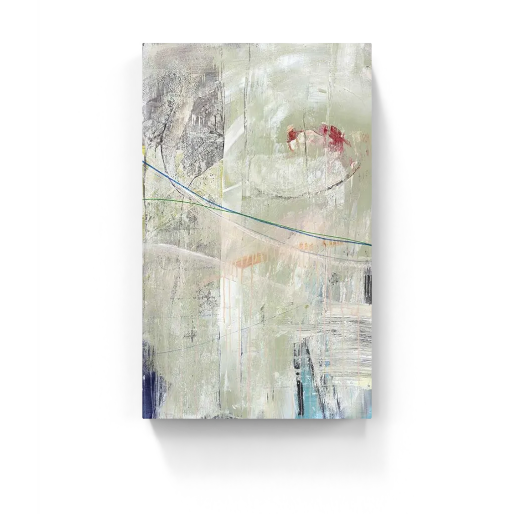 The Passing Storm I layers soft grays, sage, and whites with energetic lines and drips—like the lingering atmosphere after rainfall. A quiet tension between chaos and calm.