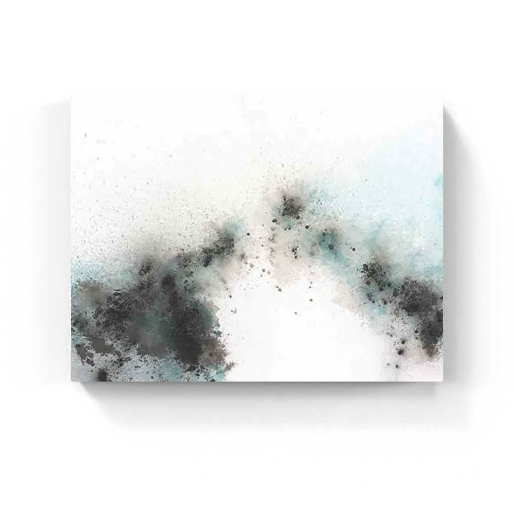Ethereal and dynamic, this atmospheric abstract painting features bursts of teal and inky black drifting across a white background. The soft gradients and open space create a sense of calm, depth, and graceful movement.