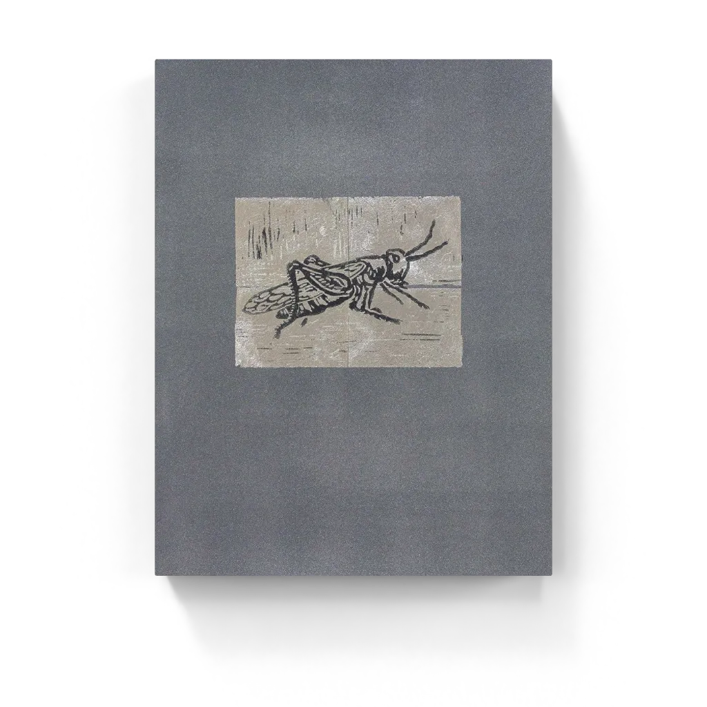 A single ant, boldly inked in black, traverses a gold-leafed terrain etched with fine lines. Centered on a deep gray field, the image feels both intimate and iconic—quietly honoring strength in the small.