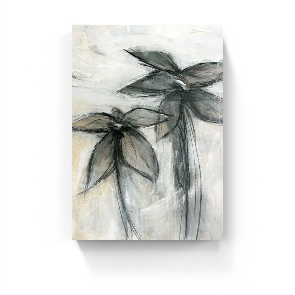 This work reflects dark floral abstract art through softly rendered charcoal blossoms that seem to dissolve into motion. The muted palette and smoky textures create an atmosphere of quiet elegance and melancholy, balancing delicacy with emotional depth.