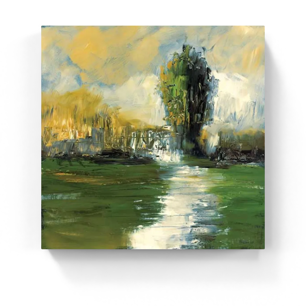 A vibrant landscape painting, capturing the essence of Tuscany's spring with striking brushstrokes. Bold greens and yellows reflect the changing season, while a lone tree stands tall against the energetic backdrop.