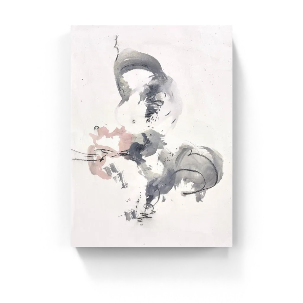 This light gestural abstract painting unfolds in soft washes of blush, grey, and charcoal. Gentle, fluid strokes and delicate marks create a sense of airy motion and quiet emotion, evoking subtle beauty and calm. Both modern and expressive