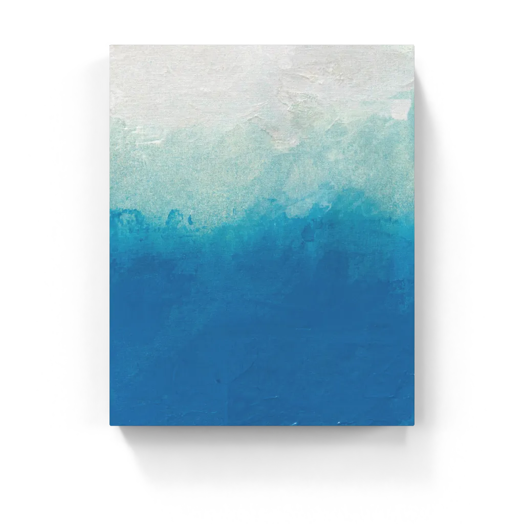 Cloud-white fades into aqua, then drops steeply into a dense, oceanic blue—layered like breath, like depth. This abstract piece suggests horizon without drawing it, a meditation in pure gradient.