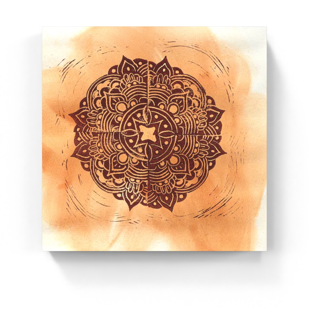 Bold and celestial, this mandala radiates from a central star, its intricate rust-toned lines carved into a sun-washed ochre ground. “Mandala II” feels both ancient and cosmic—a sacred diagram echoing through time.