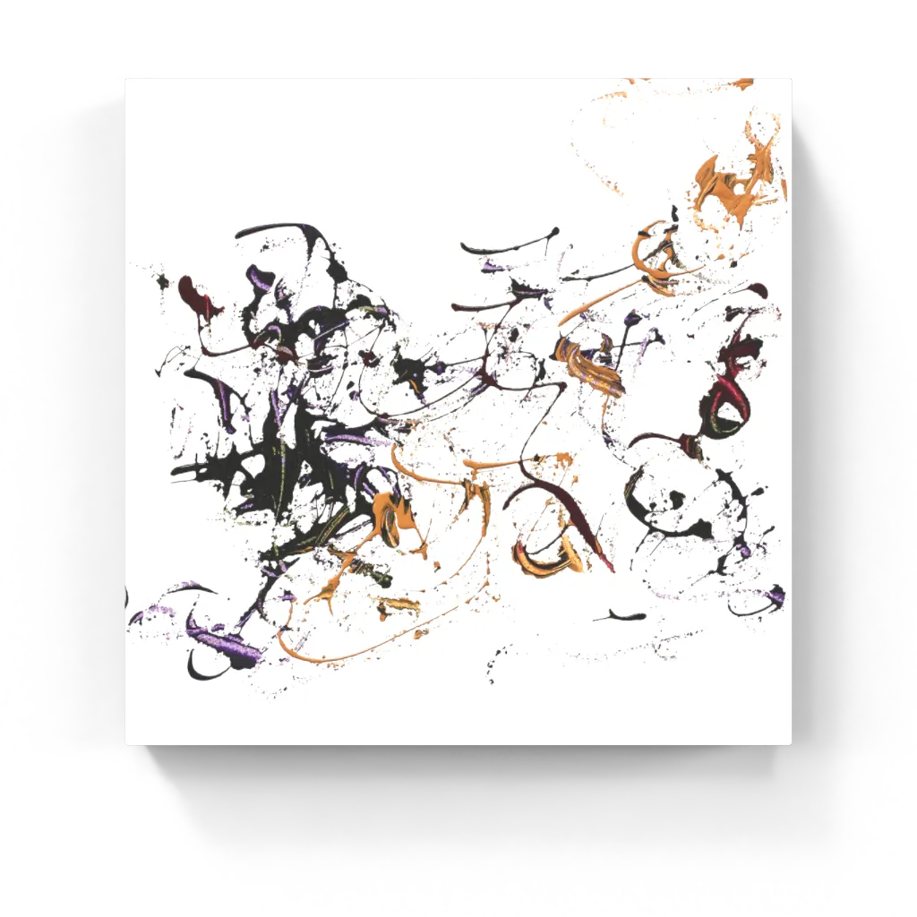 A web of tangled strokes in deep violet, black, ochre, and crimson twists across the canvas—like mycelium spreading or thought unraveling. This abstract work pulses with wild rhythm and layered growth.