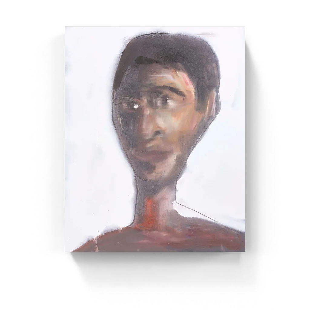 A ghostly portrait rendered in soft smears and muted browns, this figure appears half-formed, as if emerging from memory or mist. The gaze is distant, the face blurred by time and thought.