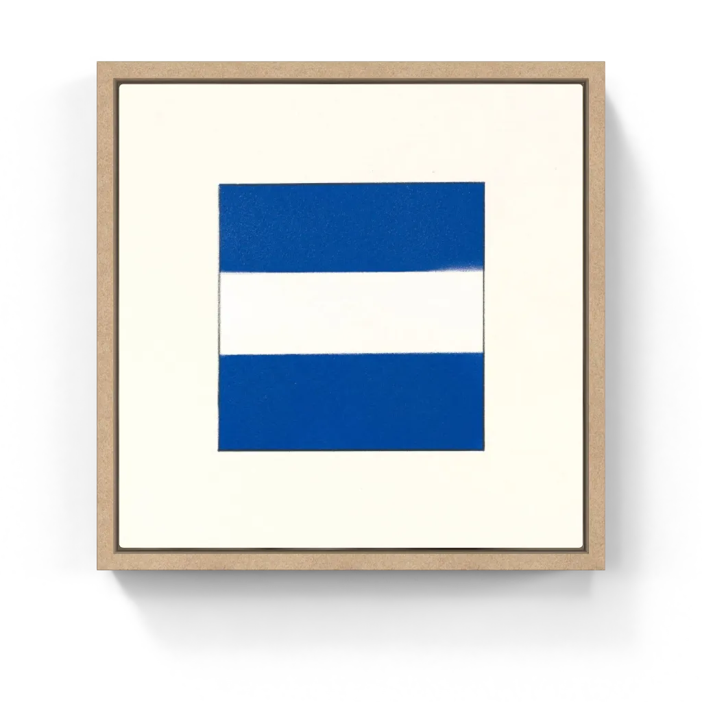 Embrace minimalist sophistication with this striking abstract artwork, featuring bold cobalt blue bands framing a clean white center, set within a crisp square shape. A powerful, contemporary statement in simplicity.