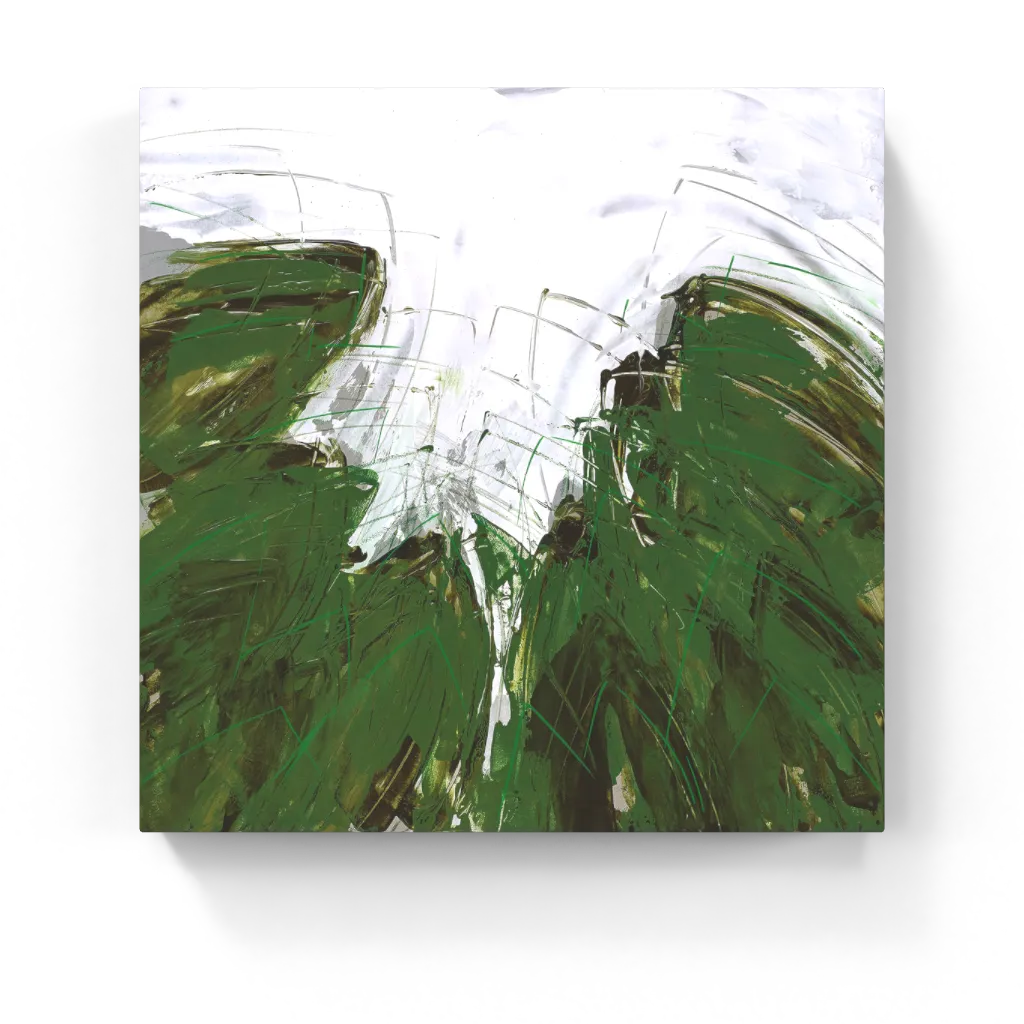 Verdant strokes rise like foliage in motion—sweeping, tangled, and raw. Emerald marks climb toward a pale, open sky, filling the canvas with lively motion. This lush green abstract art channels the energy of untamed growth in a bold, organic style.