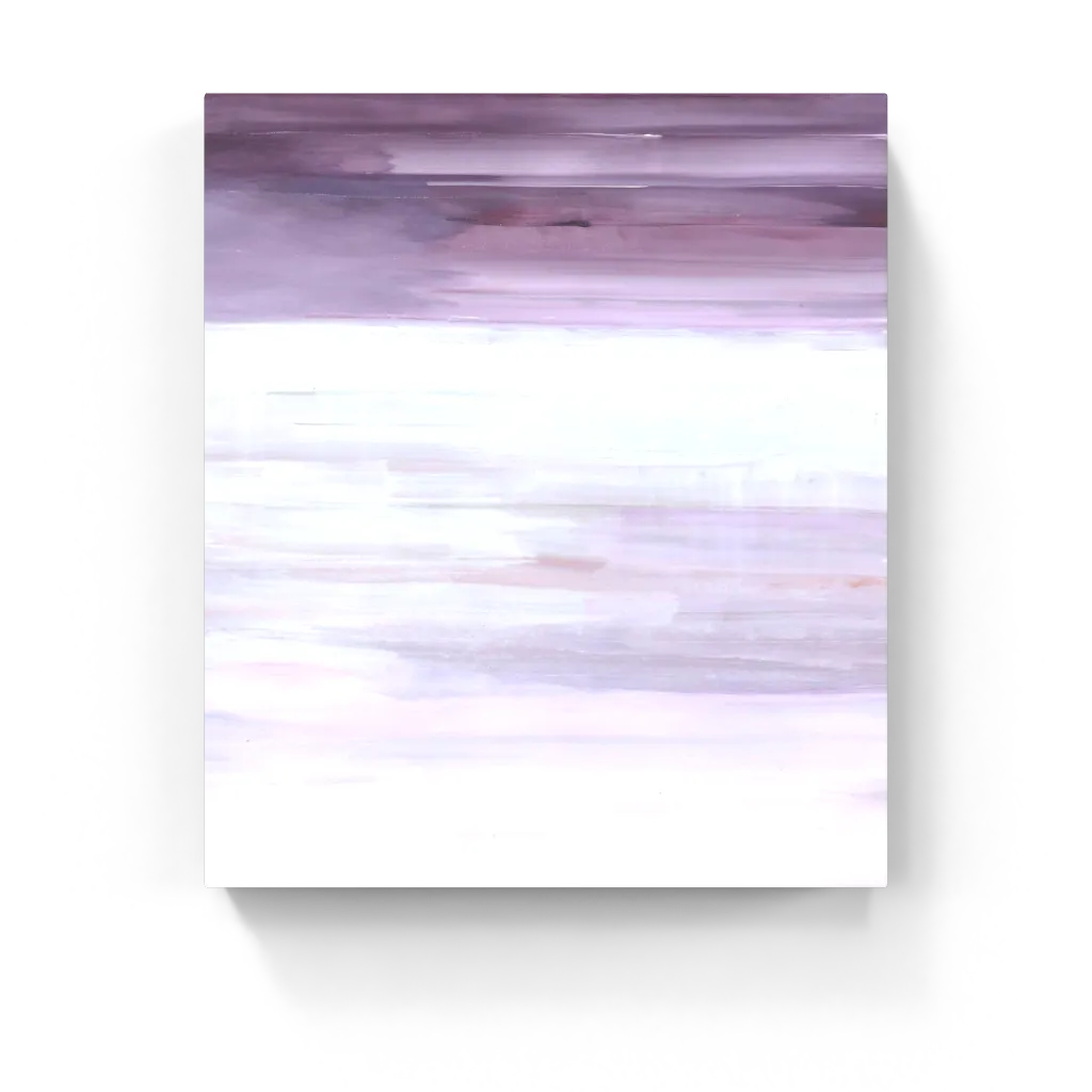 Bands of lavender, mauve, and ivory sweep across the canvas in serene horizontal motion—like distant clouds over snow-covered ground. This abstract piece hums with stillness, simplicity, and light.