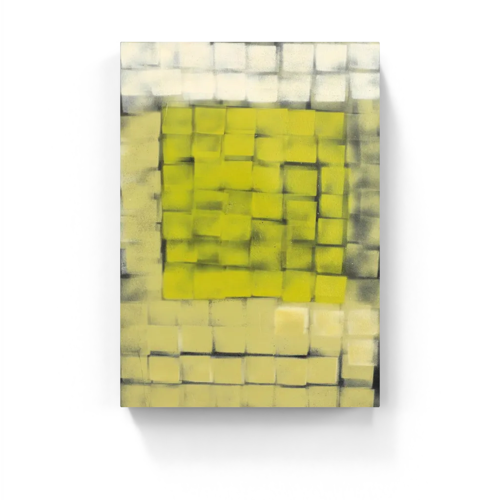 This geometric abstract artwork pulses with contrast, texture, and rhythm. Gridded yellow and white blocks float in a haze of shadows, evoking the feel of digital static or filtered memory. Bold geometry meets gritty atmosphere in a glowing composition that feels both calculated and expressive. A dynamic piece for collectors drawn to edgy, contemporary abstraction.