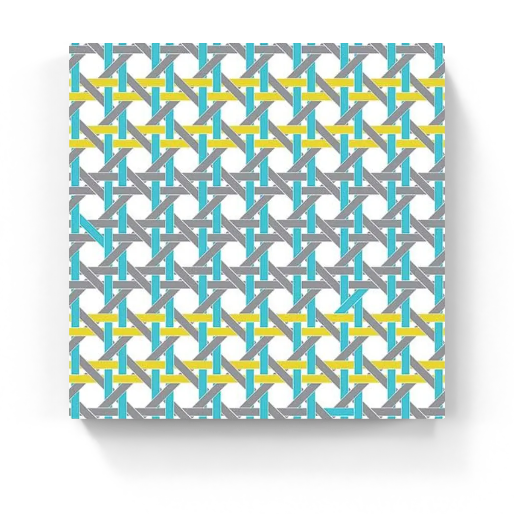 Caning I reinterprets the classic weave motif through a strikingly modern lens. Bold turquoise, yellow, and grey lines intersect to create a crisp geometric rhythm that feels both architectural and contemporary. With its clean lines and dynamic color palette, this artwork brings structure, clarity, and bold visual interest—perfect for design-forward interiors seeking a balance of tradition and modern abstraction.