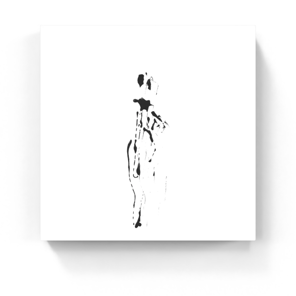 A figure barely held together by ink and air—dripping, dissolving, and raw in its fragility. Negative space dominates, letting absence do the talking in this ghost of a gesture.