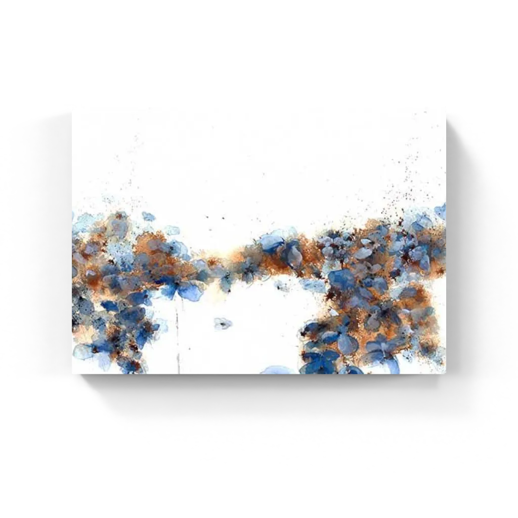 This delicate abstract painting features soft bursts of blue and earthy copper tones, evoking the motion of floral clusters. Light and airy, it brings organic energy and refined balance to modern interiors, making it a versatile and elegant focal point.