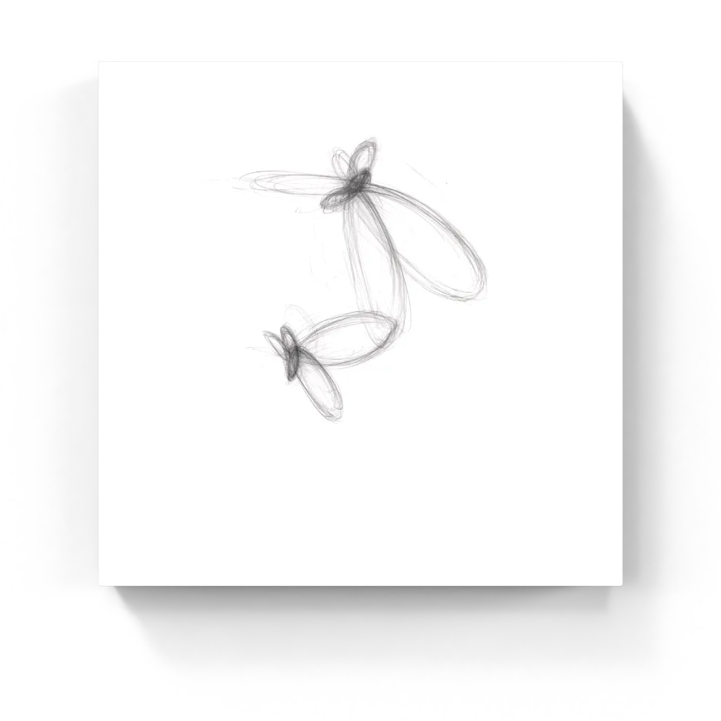Two organic forms loop and elongate in soft graphite, like cocoons in motion or wings mid-transformation. This delicate graphite artwork explores emergence, vulnerability, and stillness. Gentle yet expressive, it captures the quiet beauty of becoming.