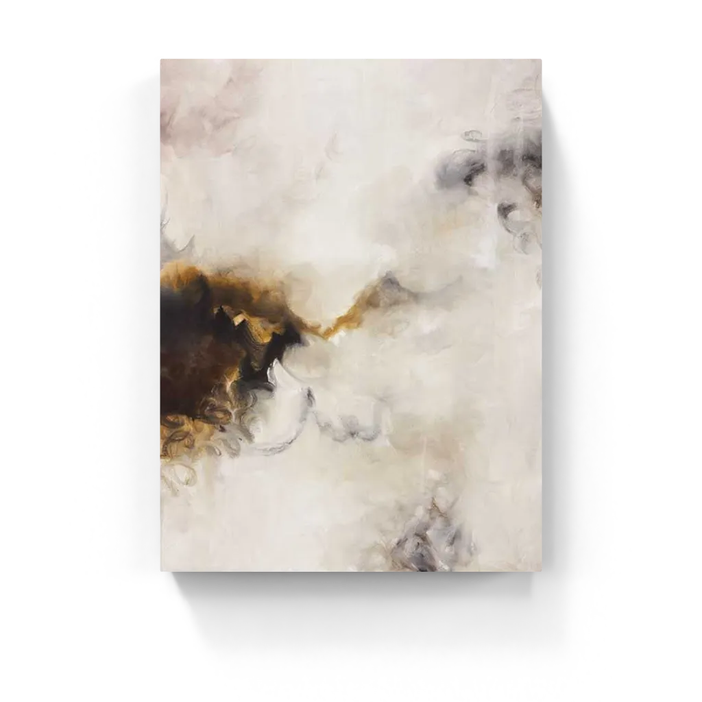 This elegant abstract painting features ethereal swirls of ivory, rich amber, and smoky grey. Soft, fluid brushwork shapes a serene and sophisticated mood. The harmonious palette brings both warmth and subtle drama. Perfect for contemporary interiors that value refined beauty and timeless style.