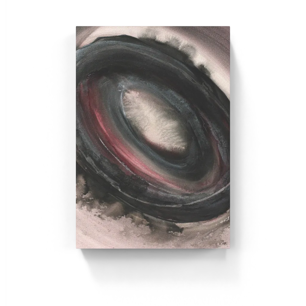 Deep crimson and smoky black ripple outward in concentric waves, forming a hypnotic vortex of mineralized motion. This geode abstract painting feels both organic and cosmic, like an ancient gem cracked open to reveal a storm within. Bold and mysterious, it radiates layered power and depth.