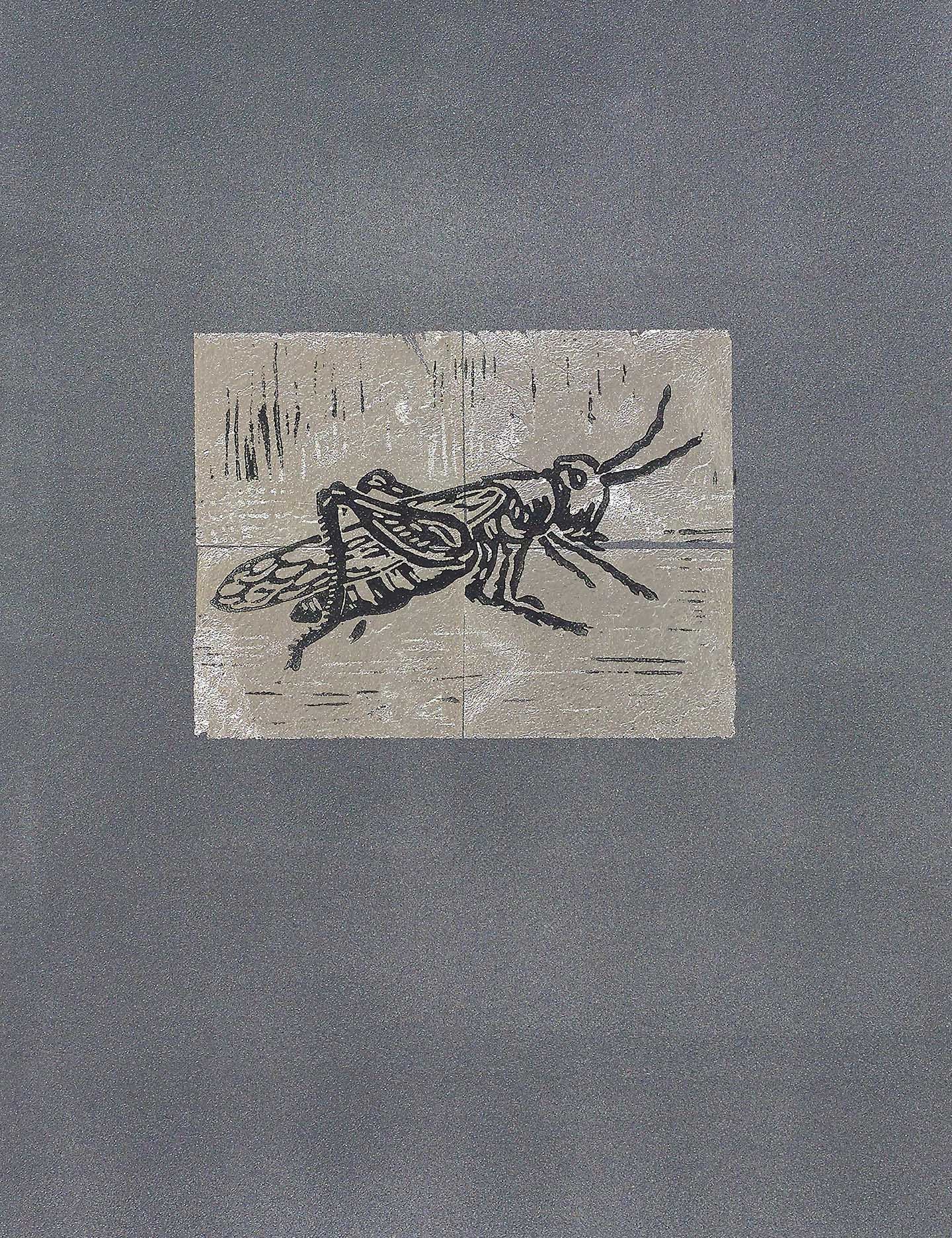 A single ant, boldly inked in black, traverses a gold-leafed terrain etched with fine lines. Centered on a deep gray field, the image feels both intimate and iconic—quietly honoring strength in the small.
