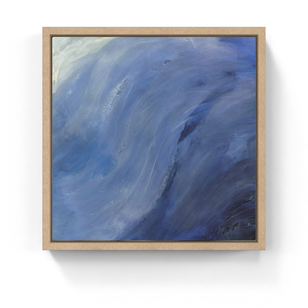Dive into tranquility with this contemporary abstract painting featuring fluid, sweeping brushstrokes in calming shades of blue and indigo. Evocative of flowing water, it brings serene elegance to any space.