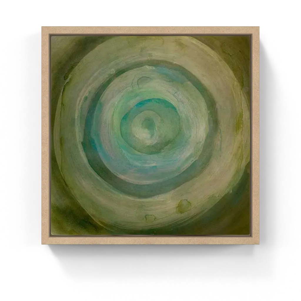 Abstract painting featuring soft, concentric circles in earthy greens and subtle blues, creating a calming, meditative mood.
