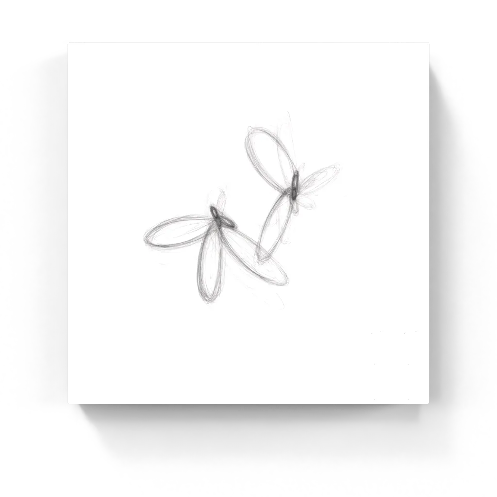 Two translucent forms pulse with symmetry and motion, their wings looping in graphite arcs like echoes in flight. This minimalist graphite drawing radiates quiet energy—light, poised, and alive. Subtle and refined, it captures balance through movement and grace.