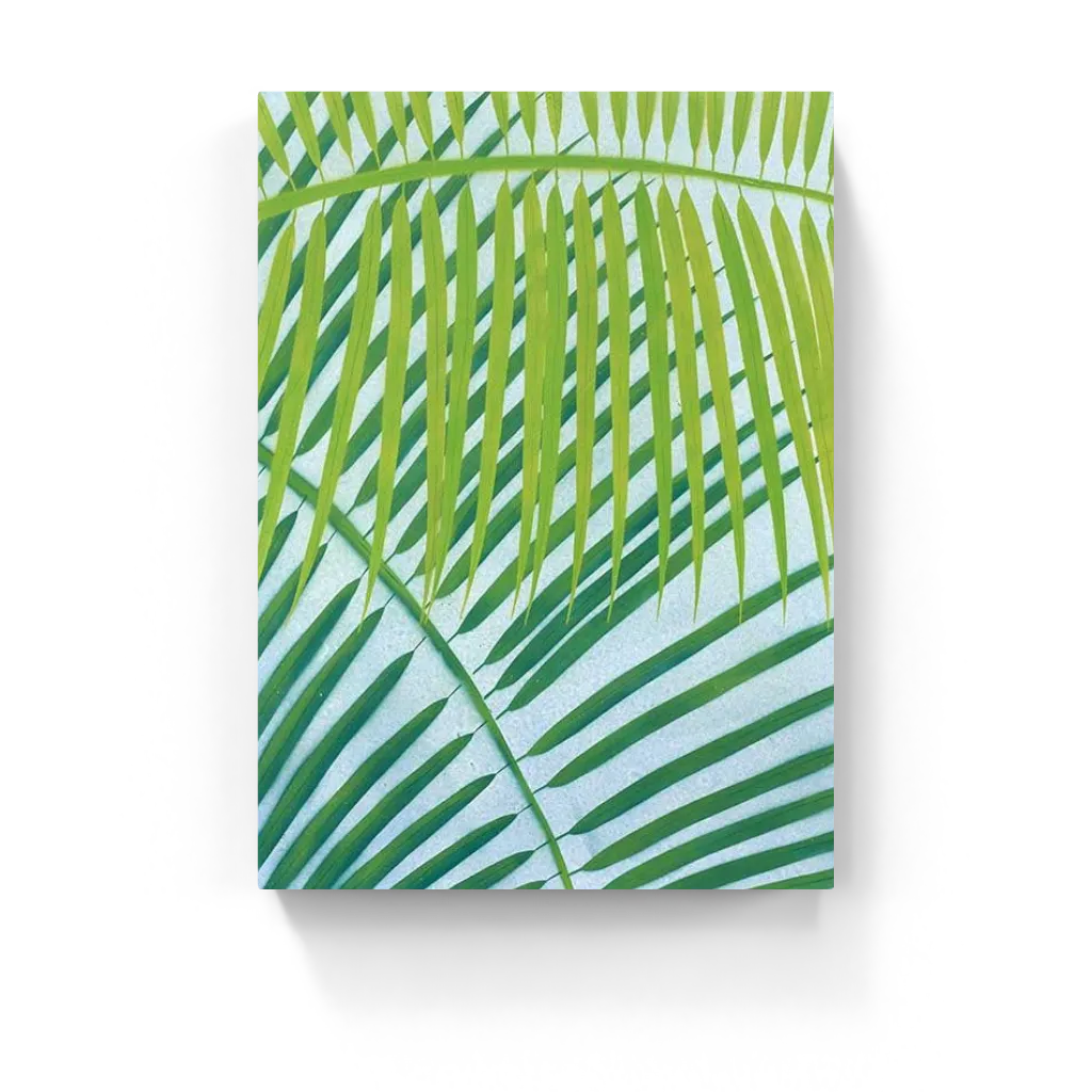 Palmetto Falsetto I bursts with tropical rhythm—layered palm fronds in vibrant lime and jungle green sway over a cool, speckled blue backdrop. Bold, fresh, and full of sun-soaked movement.