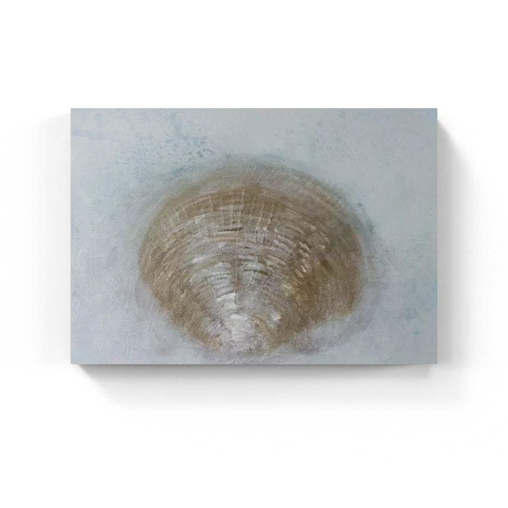 Minimalist abstract painting of a seashell in muted earth tones, capturing delicate textures and subtle coastal elegance with soft, harmonious brushwork.