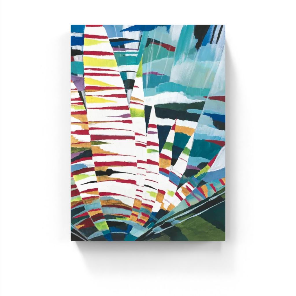 "Spectral Stems II" bursts forth with vibrant abstract botanicals, defined by bold color blocks, dynamic stripes, and vivid blues. This modern artwork energizes any space with striking visual harmony.