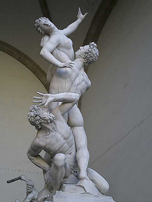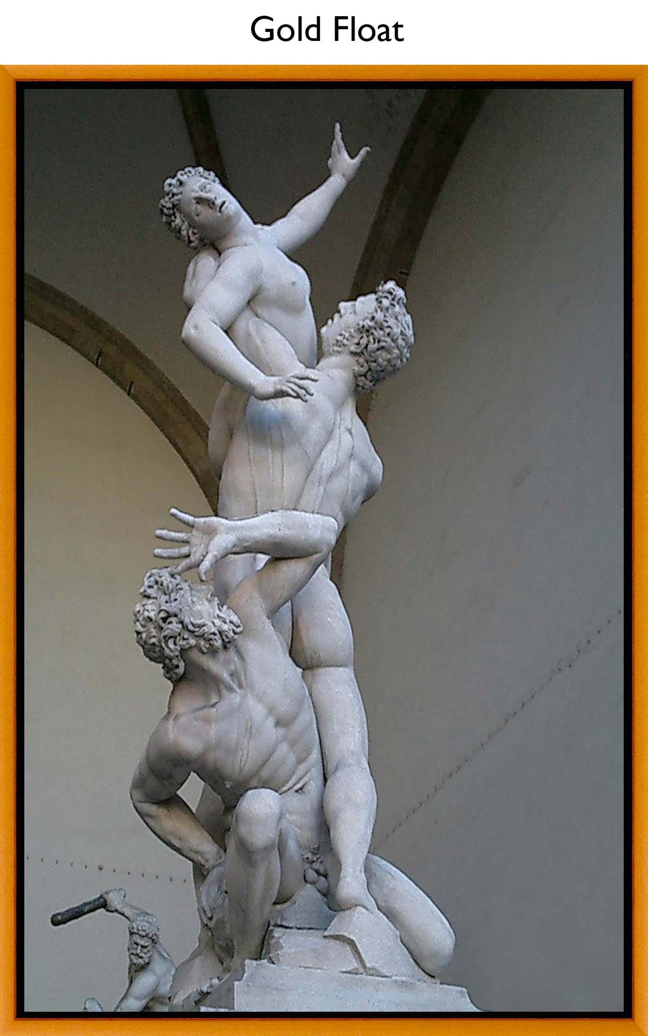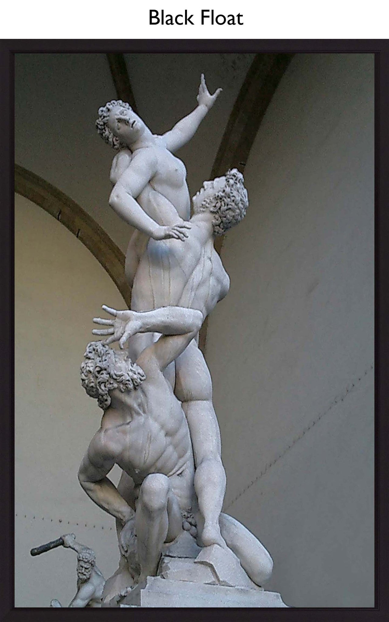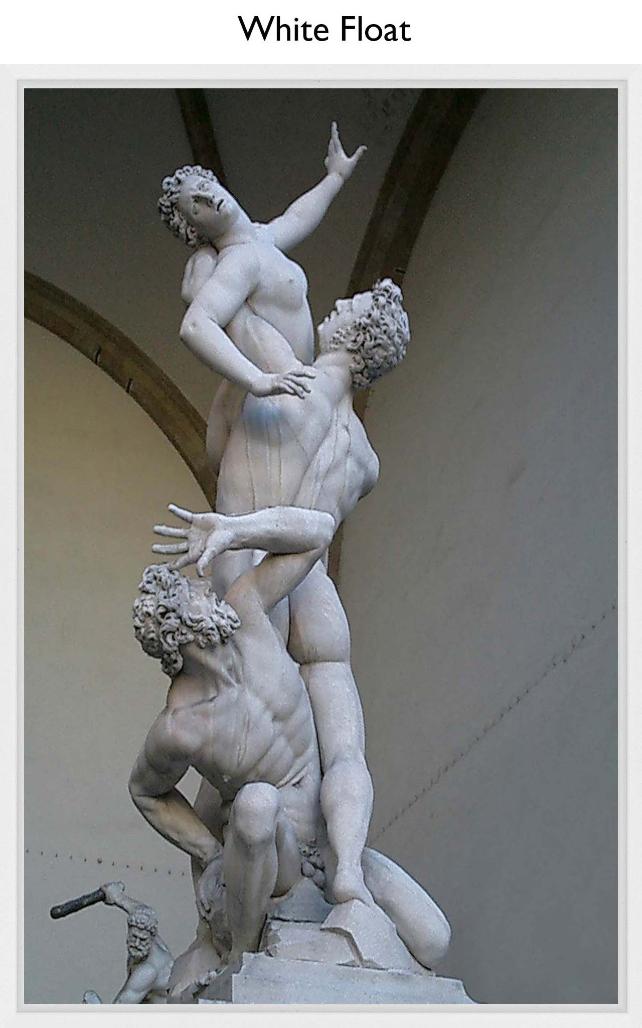 A powerful, dynamic sculpture featuring three intertwined figures in marble. The piece captures raw emotion and movement, with each figure frozen in dramatic poses of struggle and yearning.